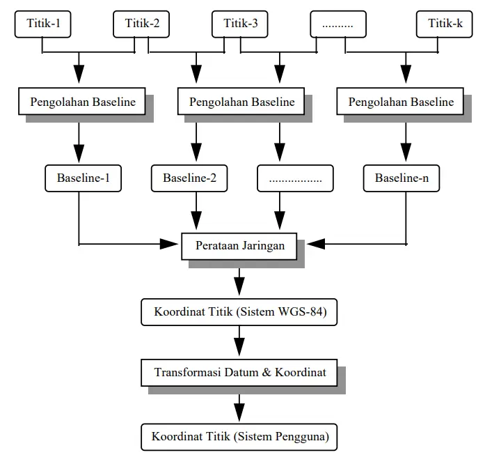 Tahapan survei GNSS meliputi tiga proses utama, yaitu:
