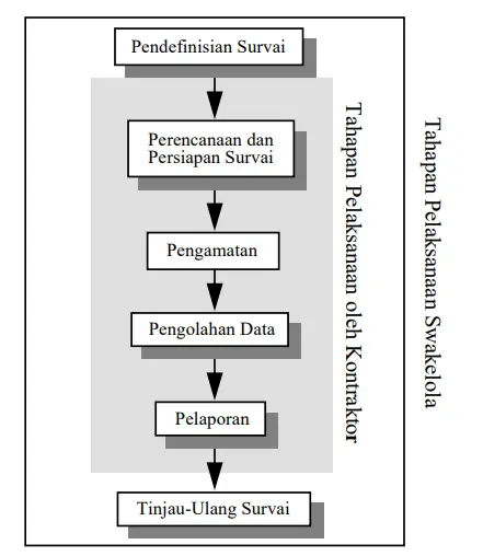 Jika instansi pemerintah seperti BPN atau BIG melakukan survei GNSS, mereka menambahkan tahapan berupa pendefinisian survei di awal (untuk memastikan tujuan dan standar jelas) serta tinjau ulang survei di akhir (untuk mengevaluasi kualitas pelaksanaan). Prosedur tambahan ini membuat keakuratan data semakin terjamin.